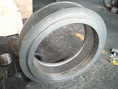 首先,在選用優(yōu)質(zhì)環(huán)模的前提下,應(yīng)根據(jù)生產(chǎn)物料的比重,選用合適的??仔问健㈤_(kāi)孔率及壓縮比。在保證環(huán)模強(qiáng)度的前提下,盡量提高環(huán)模的開(kāi)孔率,對(duì)于有些品種的物料,在保證合理壓縮比的條件下,環(huán)模過(guò)于壁薄,以致環(huán)模強(qiáng)度不夠,生產(chǎn)中會(huì)出現(xiàn)爆?,F(xiàn)象,應(yīng)當(dāng)在保證??子行чL(zhǎng)度的前提下,增加環(huán)模的厚度和增開(kāi)減壓孔。