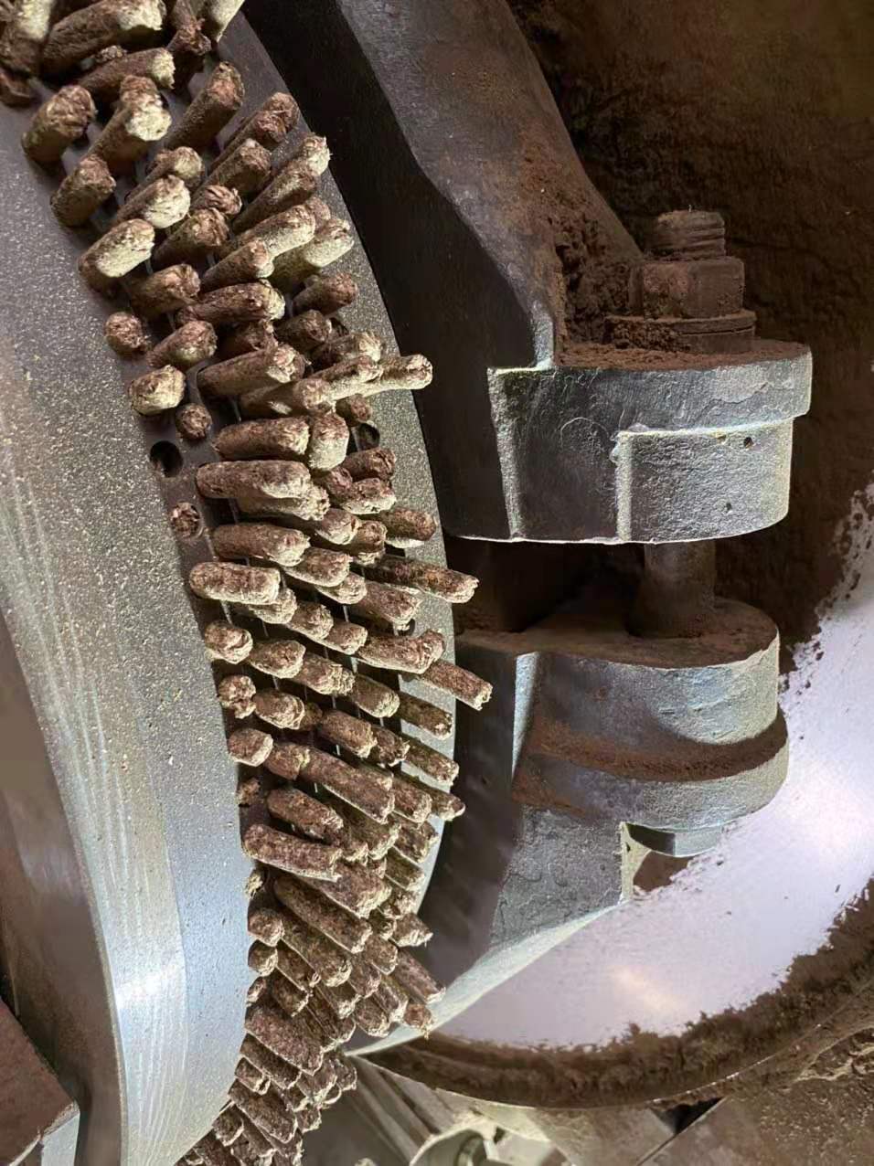 3、壓輥磨損不一致。建議:新環(huán)模要配新壓輥,使用中的每個壓輥磨損量要一致;如果壓輥、環(huán)模軸向磨損不一致,必要時要將高的地方打磨掉。